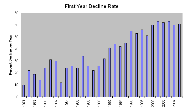 Note: This study was updated through 2005 new wells - some of the plots were updated here.