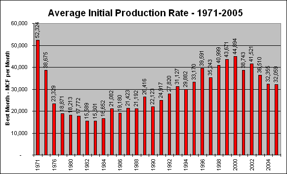 Since the states gas production has been sustained by new wells, it becomes important to understand how those new completions are performing in order to indicate whether the current volumes are sustainable given the drilling activity levels. This study focused upon the changes in the performance of new gas wells.